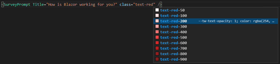 You get those red squiggly-lines all over the place, no Intellisense, and the tooltips yell at you about errors in your (perfectly fine) Tailwind CSS. That's one of the reasons I really recommend using Visual Studio Code to work with Tailwind and your Blazor app. With this setup, the same code and tooltips look like this: