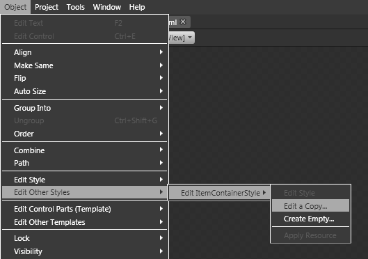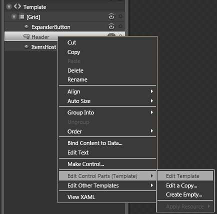 When you want to change parts of a control's default behavior, it's always a good idea to use Expression Blend instead of Visual Studio, because it gives you the possibility to copy the existing templates and use them to work from there. In Visual Studio, you would have to build a new template from scratch, which often is tedious work, especially for complex controls. In Expression Blend, you simply select the control and the according menu entry: