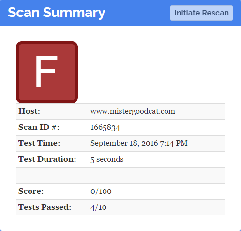 Nach einem ausgiebigen Test der eigenen Domäne erhält man dort eine Bewertung nach amerikanischem Schulnoten-System, von A wie "absolute Sahne" bis F wie "fergiss es". Nach dem Einrichten des Zertifikats von Let's Encrypt hatte meine Seite selbstverständlich eine Note von...