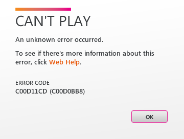 But like I said, other players have no problems with these files. They play fine in Windows Media Player, and I tried to open them in a bunch of other players, even in Windows Live Movie Maker, just to confirm it works there too. The heck, they even play in IrfanView, and that's an image viewer (no joke). So you have this shiny new phone, and the first thing you try is put your favorite album on it, which fails with... uhm... C00D11CD (C00D0BB8) - while the rest of the world has no problems with these files.